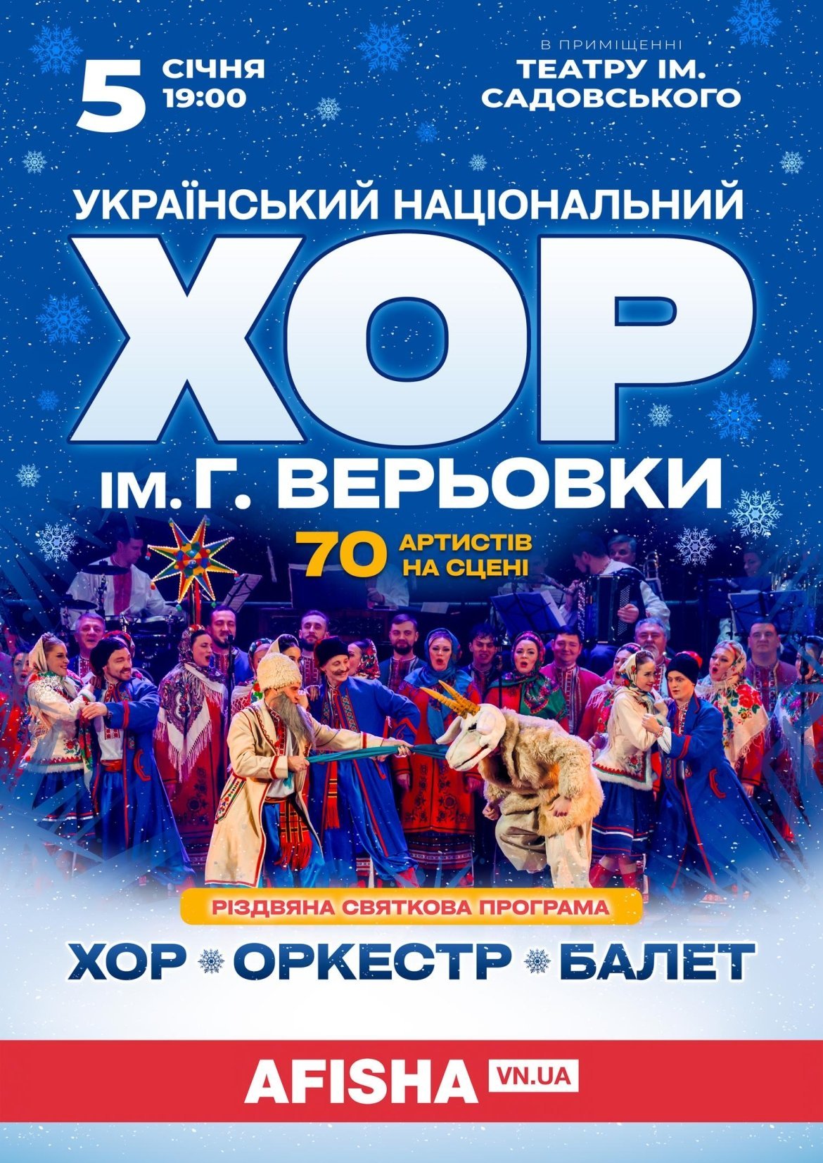 На концерті у Вінниці у межах нового масштабного туру Україною Хор ім. Верьовки презентує нову святкову програму з винятковими колядками та щедрівками, які вже давно стали музичним кодом нації.