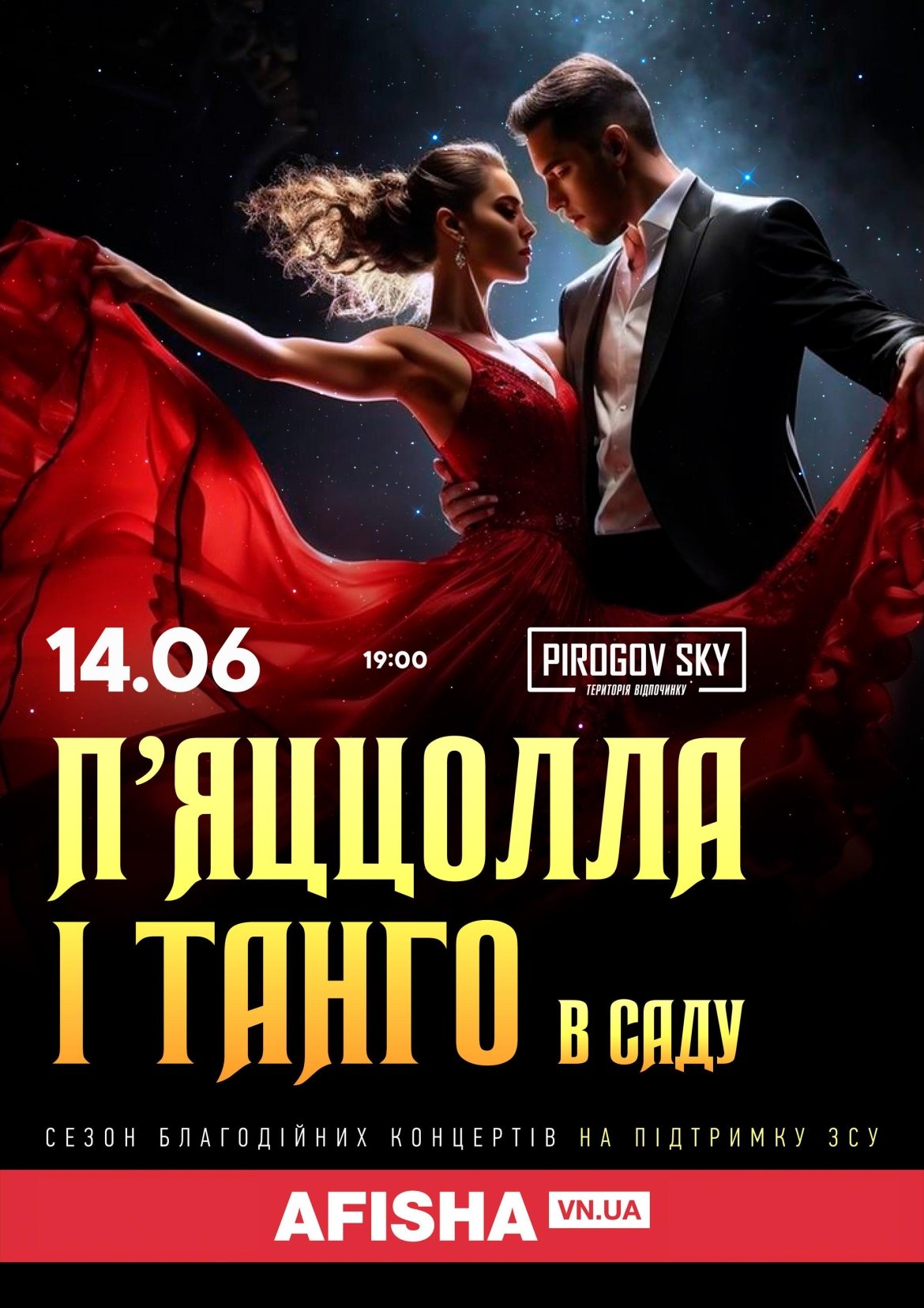 14 червня о 19.00 у PIROGOV SKY, просто неба у музеї-садибі Пирогова, на розкішному концерті «П’яццолла і танго в саду» прискорене серцебиття відчують всі глядачі!