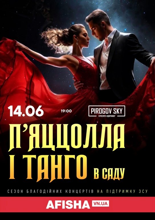 «Віртуозною грою зачарує Академічний камерний оркестр «Арката». Експресією диригування скорить заслужений діяч мистецтв України та культури Польщі, маестро Георгій Курков. Найсильніші враження отримаєте ви! — запрошують організатори — компанія «ВІННИЦЯКОНЦЕРТ». —Ласкаво просимо у світ танго 14 червня у PIROGOV SKY!»