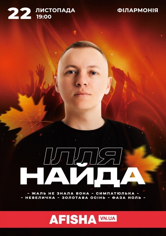 Квитки на концерт купуйте за цим посиланням https://afisha.vn.ua/events/Illia-nayda
