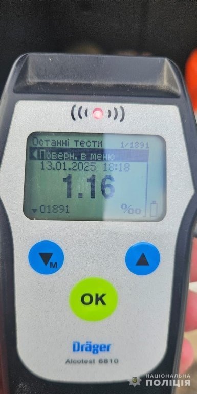 Інцидент стався в місті Іллінці, що на Вінниччині. Зупинили водія за порушення правил дорожнього руху. При перевірці в крові чоловіка виявили 1,16 проміле aлкоголю.