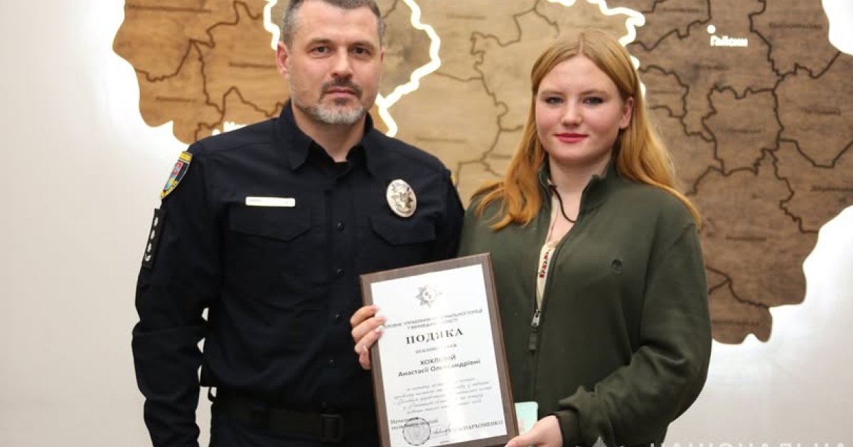 Начальник поліції Вінниччини Юрій Пархоменко вручив Хохловій Анастасії подяку за активну громадянську позицію, проявлену пильність та ініціативу у співпраці з ГУНП у Вінницькій області під час пошуку безвісти зниклої Аліни.
