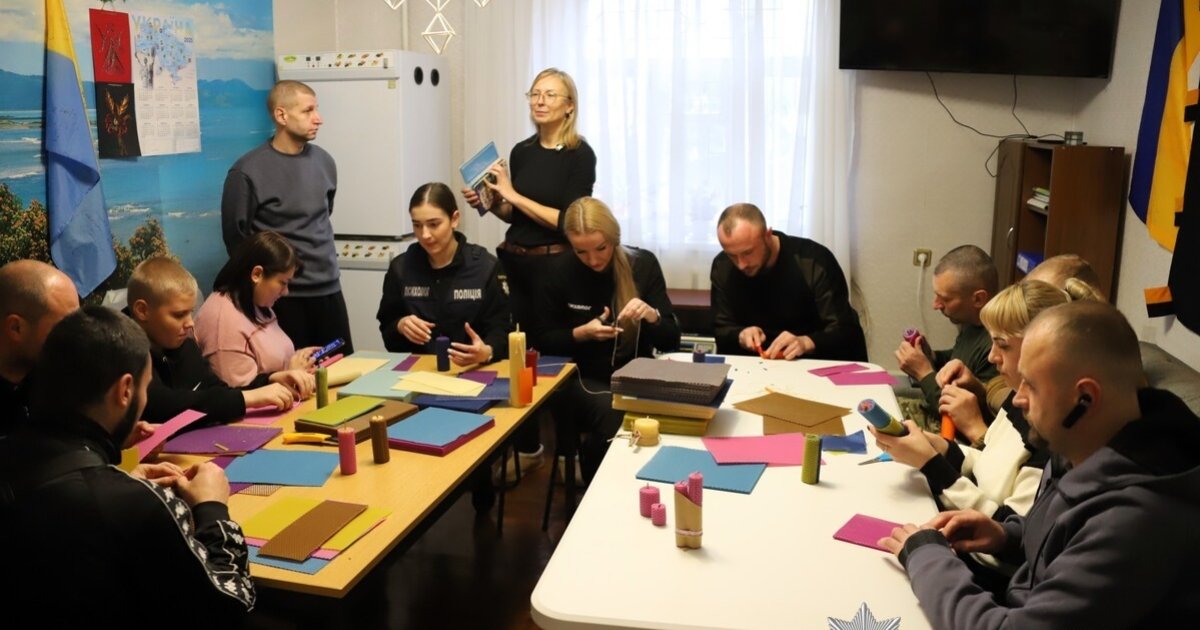 Психологи поліції та громадські активісти провели майстер-клас з виготовлення декортивних свічок з вощини для поранених Захисників.