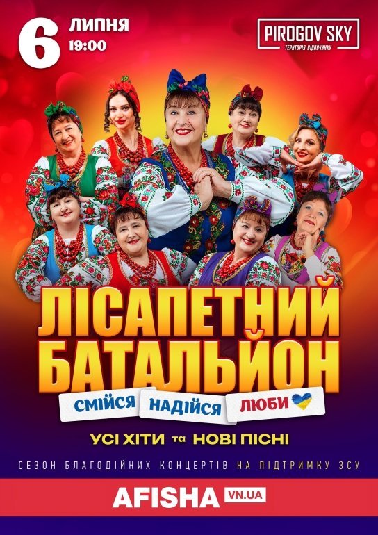 «Справжня Україна, справжні українські пісні, справжня щира українська душа! Кожний концерт «Лісапетного батальйону» — це свято і 100% заряду позитиву, душевні історії і дотепні жарти, інтерактиви з глядачами і щирий сміх!» — запрошують організатори — компанія «ВІННИЦЯКОНЦЕРТ».