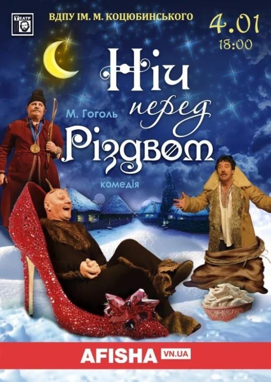 4 січня о 18.00 у концертній залі Вінницького педагогічного університету не пропустіть «Ніч перед Різдвом» Хмельницького академічного театру ім. Старицького.