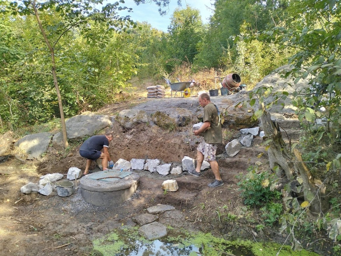 У пабліку регулярно звітували про хід робіт. Спочатку волонтери облаштували саме джерело – зробили кам‘яну кладку, вмурували мармурову пам‘ятну дошку.