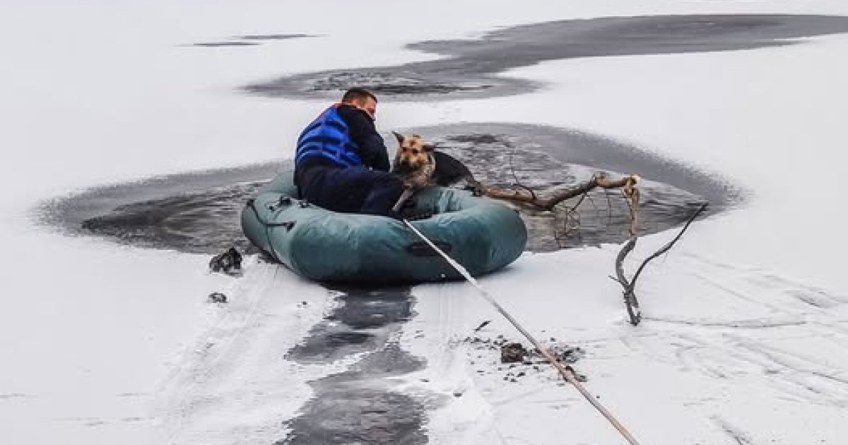 Бійці ДСНС допливли до собаки на човні та витягли його з крижаної пастки. Оговтавшись після шоку, пес не відходив від своїх рятівників, зворушливо проявляючи вдячність.
