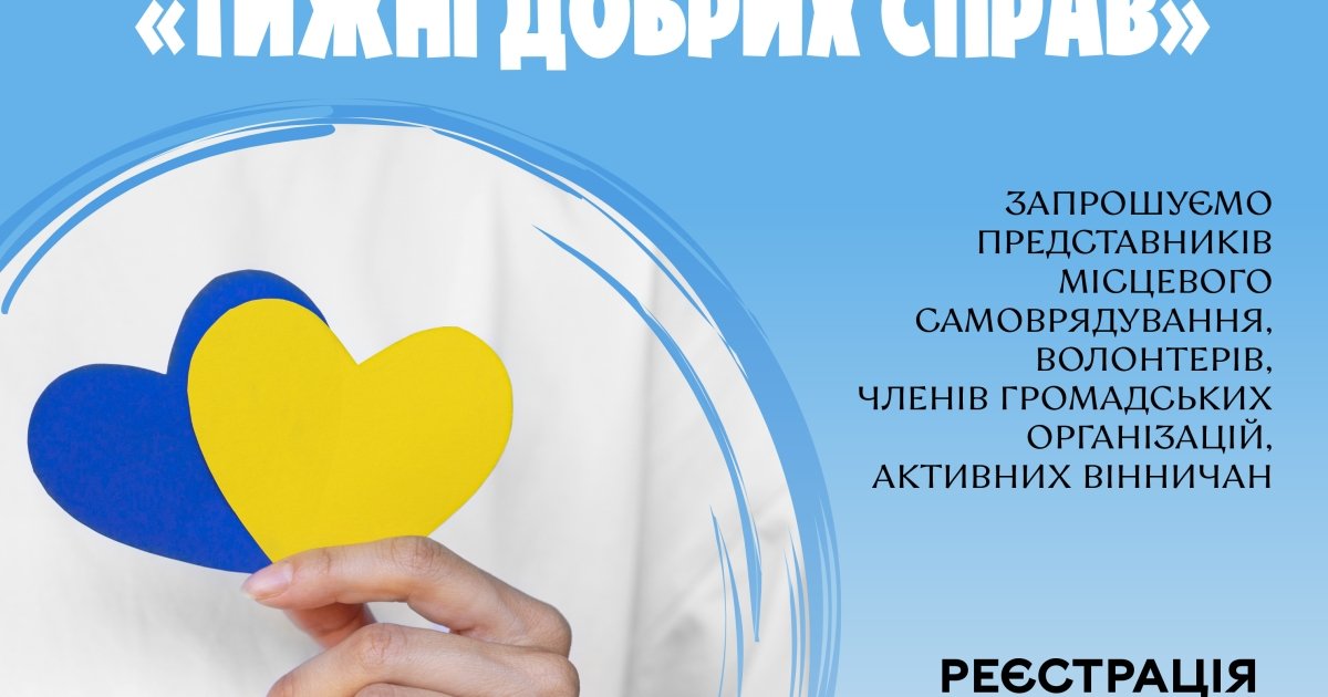 У Вінниці відбудеться форум «Тиждень добрих спрaв». На заході представники влади та громади обговорюватимуть реaлізaцію соціaльних ініціaтив, нові можливості співпрaці та залучення молодих вінничан до волонтерства.