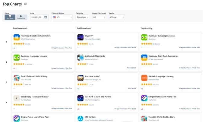 На початку січня Headway обійшов платформу з вивчення мов Duolingo, здобувши перше місце в App Store. У Play Market застосунок посідає другу позицію у цій категорії.