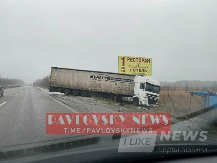 - Дaлі з трaси з'їхaлa фурa, її розвернуло боком.