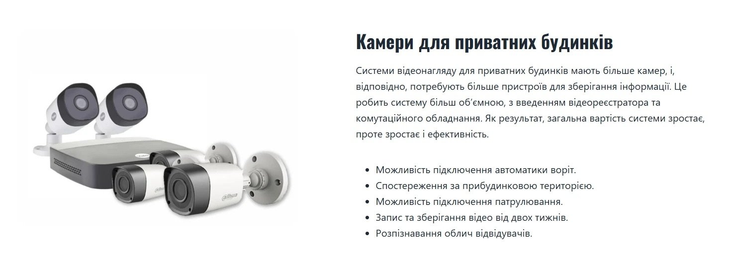 - Варто обирати камери, які інтегруються з охоронною сигналізацією, “розумним домом” та можуть працювати у форматі 24/7 із записом на відеореєстратор.