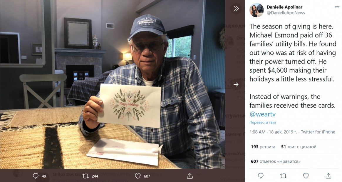 Бізнесмен Майкл Есмонд з міста Галф-Бріз у Флориді сплатив борги сусідів за комунальні послуги, щоб вони не виявилися без світла і тепла на свята. Про це пише CNN.
