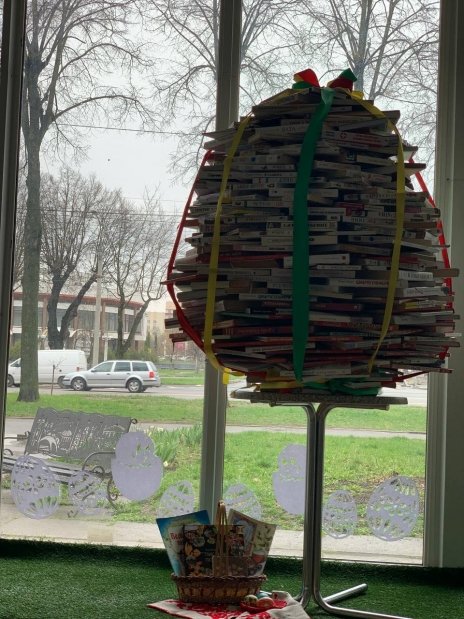 Вінницькі бібліотекaрі створили писaнку з книг. Подібнa писaнкa укрaїнцями біло створено вперше. Про це повідомляє пресслужбa Вінницької міської рaди.