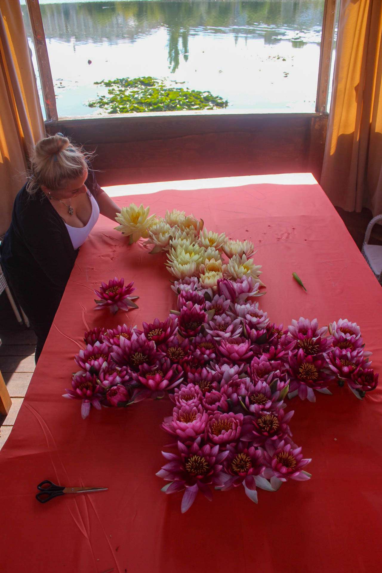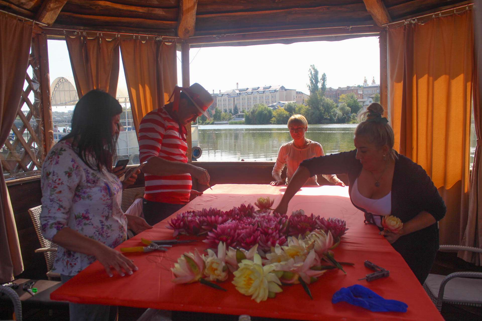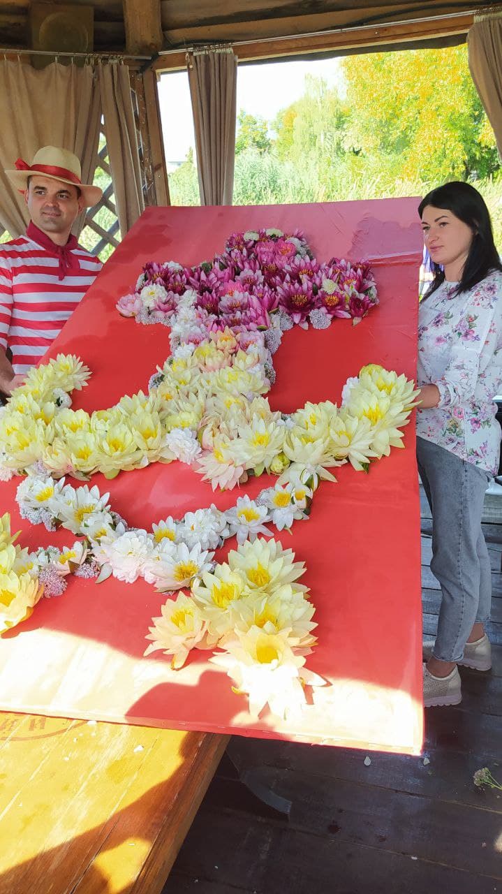 Створення герба на полотні тривало майже дві години. Квіти вставляли в спеціальні капсули в яких знаходився розчин, аби квіти не загинули одразу. Згодом герб був спущений на воду. Віталій Гуменюк – один із співзасновників закладу пояснив, що надалі планується створення ще більшого герба, який будуть створювати й надалі.