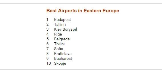 Рейтинг кращих аеропортів Східної Європи очолив міжнародний аеропорт Ференца Ліста в Будапешті, на другому місці - міжнародний аеропорт Таллінна.