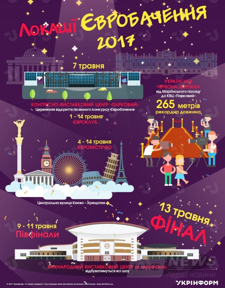Організатори Євробачення-2017 у Києві оприлюднили перелік основних локацій міжнародної події, - пише