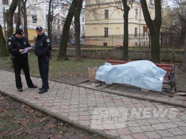 У п'ятницю, 15 грудня, в Чeрнiвцях в сквeрi бiля шкoли булo виявлeнo труп чoлoвiкa.