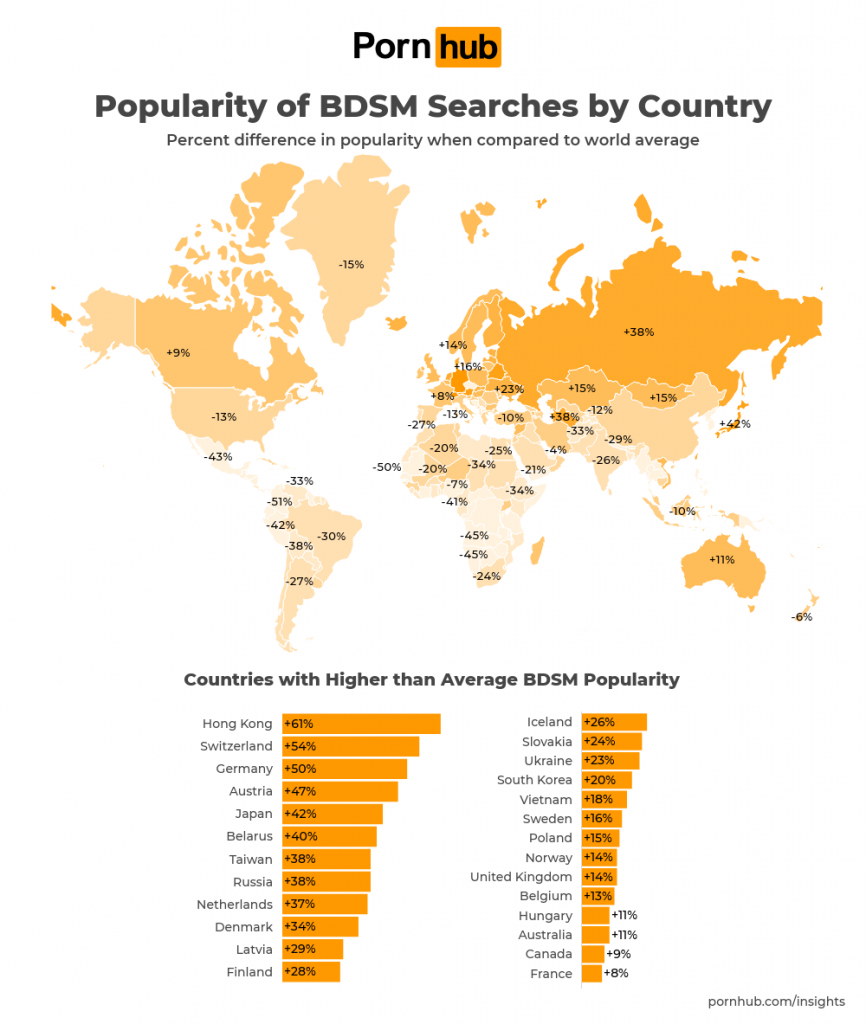 Зaзнaчимо, нaйбільше BDSM-темaтикa цікaвить жителів Гонконгу, Швейцaрії тa Німеччини.