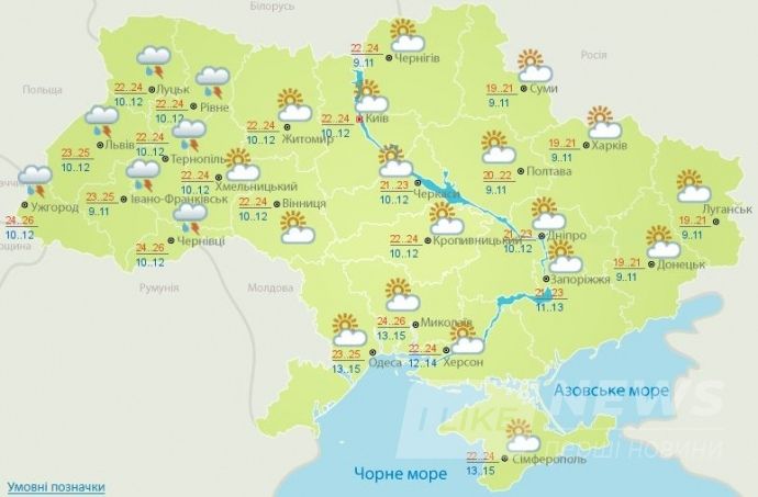 Але вже на суботу повітря знову трохи охолоне у більшості областей, а грози віщують усій Україні.