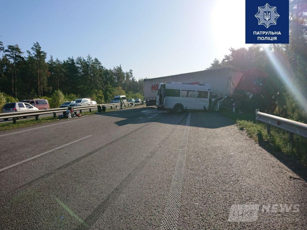 У прес-службі Патрульній поліції Київської області повідомили, що за попередньою інформацією, водій DAF FT95 рухався до столиці, здійснив зіткнення з Mercedec-Benz 1320, після виїхав на смугу зустрічного руху та допустив зіткнення ще із ВАЗ та Mercedes-Benz Sprinter. Останній транспортний засіб був повністю заповнений пасажирами.