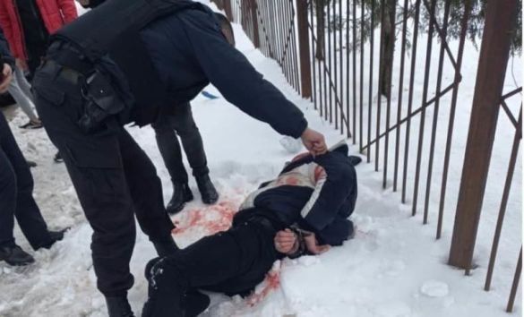 Інші охоронці разом із співробітниками поліції охорони наздогнали та затримали підозрюваного у дворах, де ще один із працівників отримав удар сокирою. На місце події викликали поліцейських.