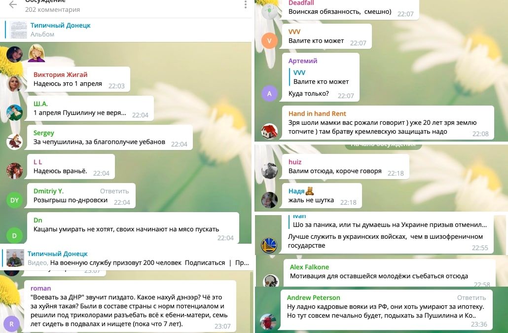 На скріншотах - реакція жителів непідконтрольних територій на "укази" Пушиліна Дениса Володимировича і Пасічника.