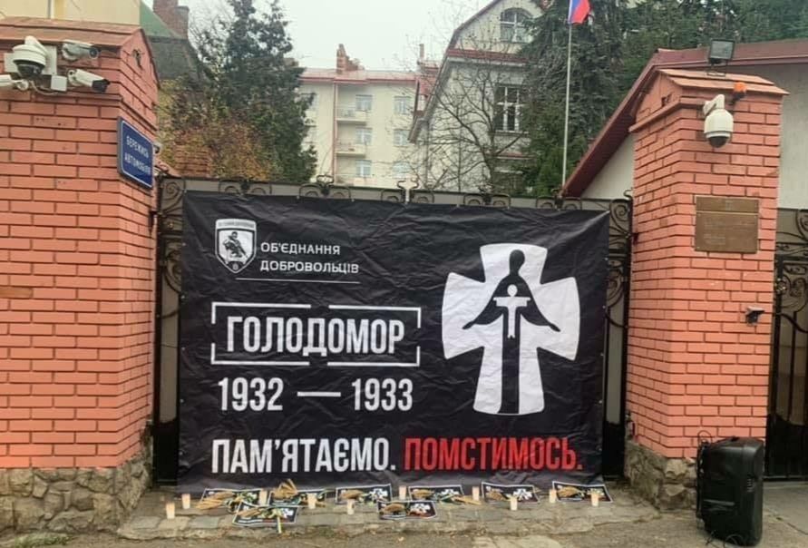 Такий перформанс організували під консульством РФ активісти, які "хотіли нагадати, що саме Росія винна в смертях мільйонів українців, що Голодомор - був не штучний голод, це був геноцид проти української нації".