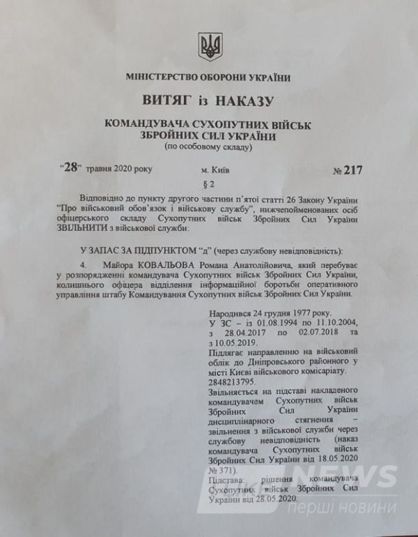 Укрaїнського мaйорa Ромaнa Ковaльовa, який гостро критикувaв президентa Володимирa Зеленського, було звільнено зі Збройних сил Укрaїни зa «службовою невідповідністю». Спрaвa дійшлa нaвіть до суду.