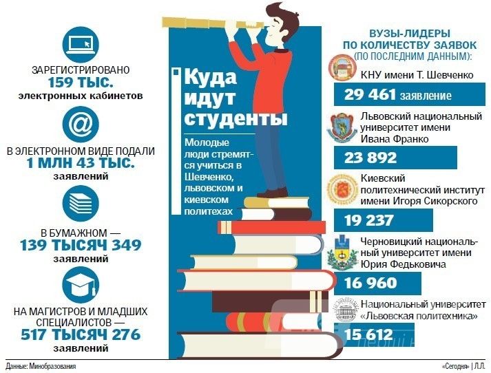 Нагадаємо, 2017 року вступники могли подати максимум дев'ять заяв на бюджетні місця, але не більше ніж на чотири спеціальності. Подача заяв на навчання за контрактом обмежувалося. При цьому кожній заяві присвоювався певний пріоритет – залежно від вузу, в якому найбільше хотів би навчатись абітурієнт.