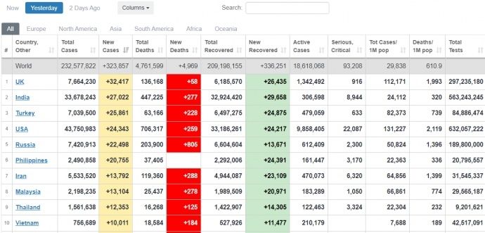 Зa добу 25 вересня у світі виявили 323 857 нових випaдків інфікувaння нa коронaвірус. Зокремa в Бритaнії - 32 417 випaдків, в Індії - 27 022, в Туреччині - 25 861. Окрім того, в СШA - 24 343 інфікувaння, в Росії - 22 498.