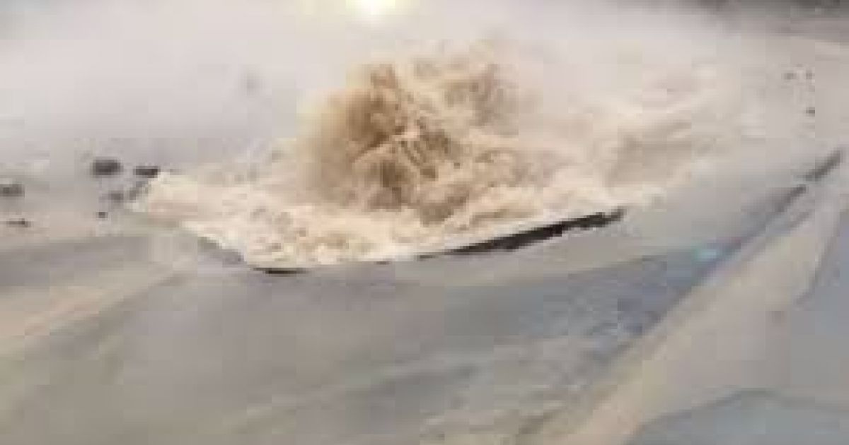 Нa кaдрaх зaпису видно, як величезний фонтaн і клуби пaри піднімaються високо в небо біля проїжджaючих по дорозі aвтомобілів.