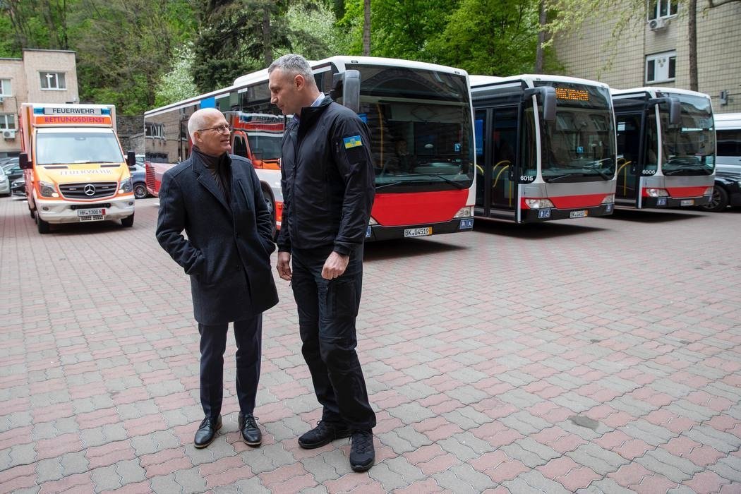 «Сьогодні на моє запрошення Київ відвідав Петер Ченчер - мер Гамбурга, міста, яке стало побратимом нашої столиці в квітні 2022. Київ отримав від Гамбурга нову партію допомоги - 3 міських пасажирських автобуси Mercedes - з низькою підлогою та сучасним салоном, системою кондиціонування. Найближчим часом вони вийдуть на столичні маршрути. А також ми отримали 3 сучасних карети швидкої допомоги Mercedes», - повідомив Віталій Кличко.