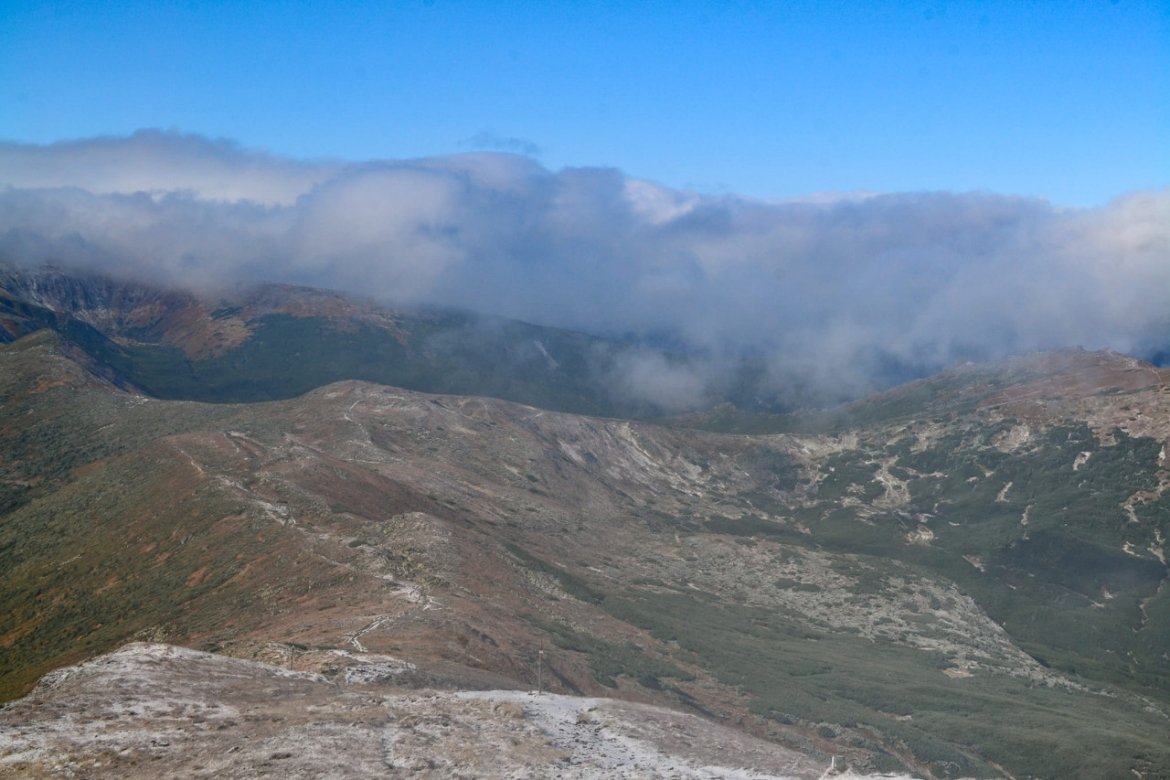 Українські Карпати засипало першим снігом, що стало відомо завдяки фотографіям з гори Піп Іван Чорногірський, опублікованим користувачкою Лесею Чернітович.
