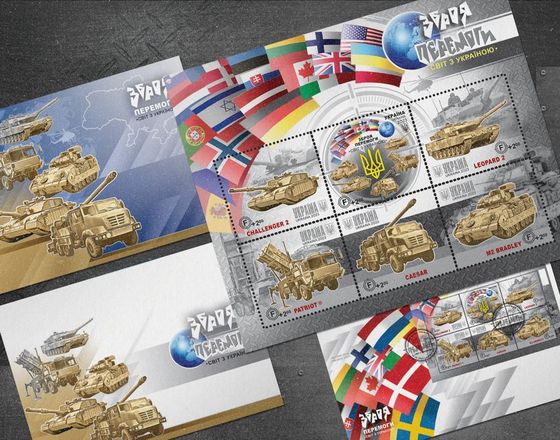 Укрпошта оголосила про випуск нового благодійного поштового блоку марок, присвячених бронетехніці, включаючи Challenger 2, Leopard 2, Patriot, CAESAR та M2 Bradley. За заявою АТ "Укрпошти" Ігоря Смілянського, прибуток від продажу цих марок буде спрямований на закупівлю дронів.