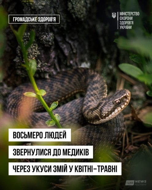 Упродовж квітня та травня 2025 року в Україні зареєстровано вісім звернень до медиків через укуси змій. Це на 23 випадки менше порівняно з аналогічним періодом минулого року, що свідчить про позитивну динаміку. Проте серед постраждалих — троє дітей, тому фахівці наголошують: повністю ігнорувати ризики не варто.
