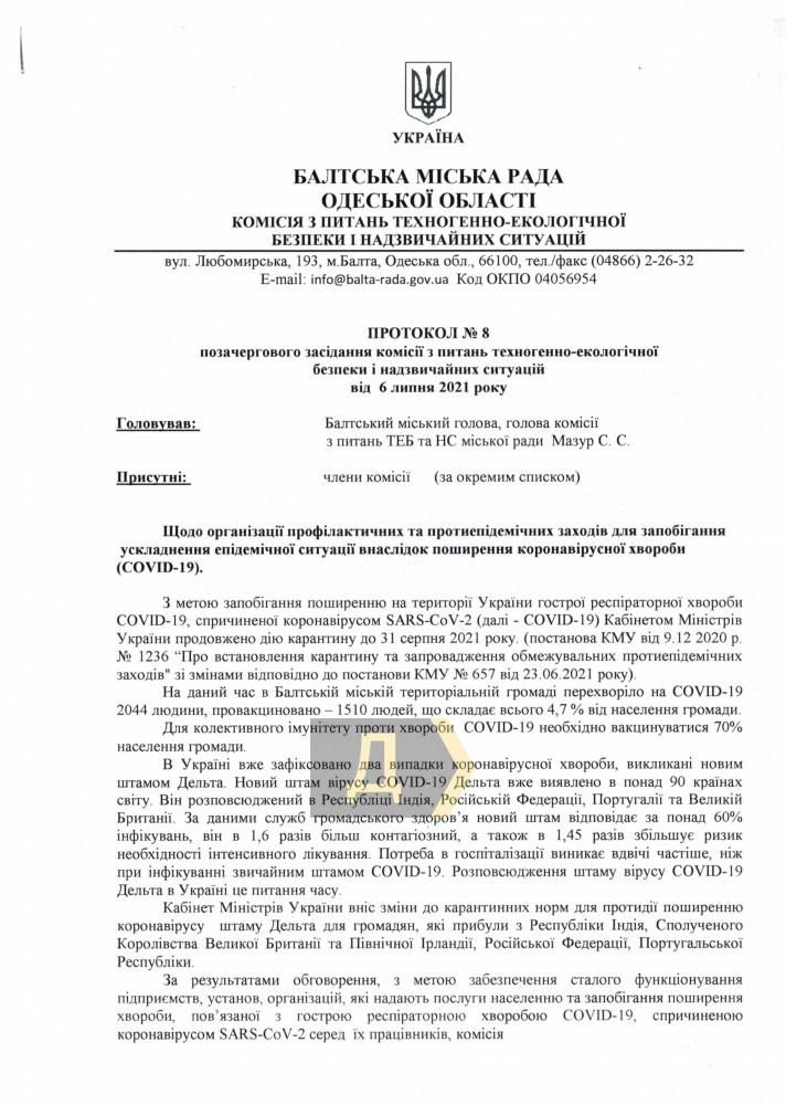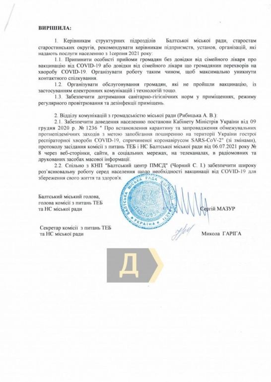 Як повідомляє "Думська", невакцинованих не хочуть приймати в Балтській міській об'єднаній територіальній громаді. Їх перестали пускати в адміністративні приміщення мерії і старостинських округів.