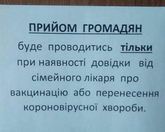 Місцеві скаржаться, що без документа від сімейного лікаря про вакцинацію або про те, що людина перехворіла, неможливо отримати навіть довідку про склад сім'ї.