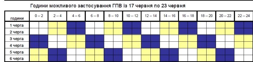 Тривалість знеструмлення споживачів по ГПВ може коливатись від 2-х до 4-х годин з подачею електроенергії від 4-х до 2-х годин відповідно.