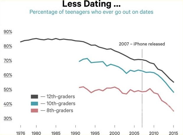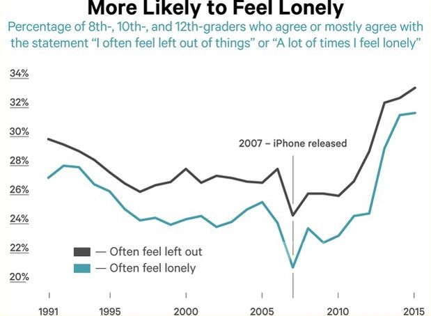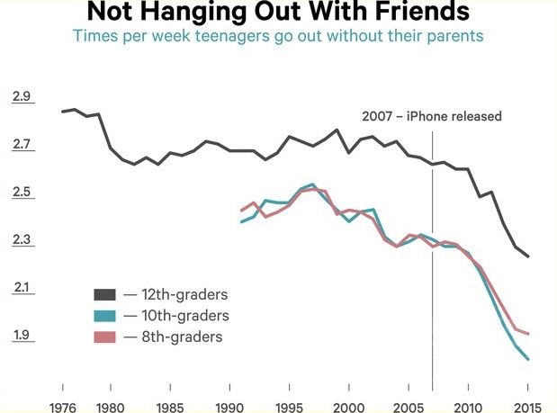За даними The Atlantic, сучасні підлітки, так звані міленіали і покоління Z, менше спілкуються, менше проводять часу в компаніях і навіть менше сплять. Усе це — через наявність у їх житті смартфонів.