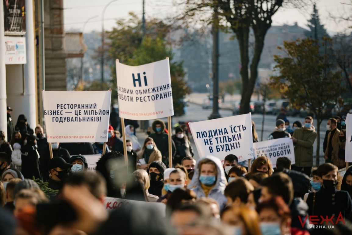 Акція протесту під Кабміном проти запровадження карантину вихідного дня, Київ, 11 листопада 2020 року