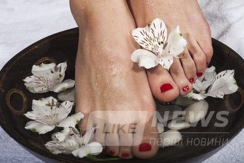 - Сядьте в зручному місці та занурте стопи у ванночку на 20-30 хвилин.