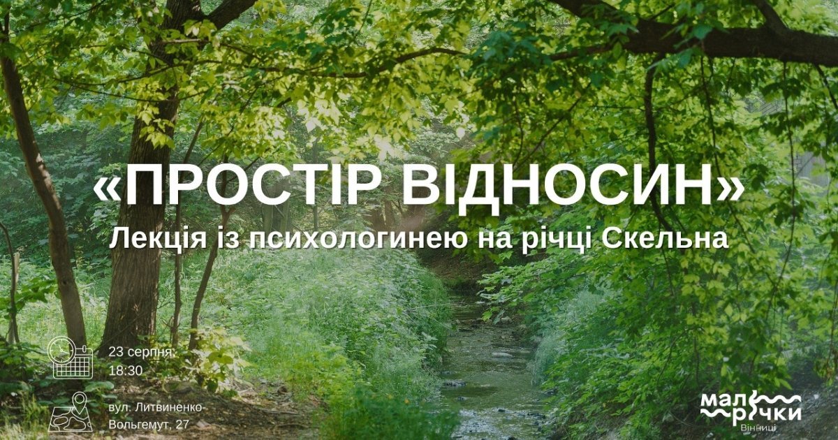 23 серпня о 18:30 вінничани та гості міста зможуть відвідати цікаву та змістовну лекцію «Простір відносин», яку проведе психологиня Анастасія Семенюк. Захід відбудеться в унікальному місці – на березі малої річки Скельна, що вже стало осередком культурного життя Вінниці. Про це йдеться в повідомленні пресслужби міськради.